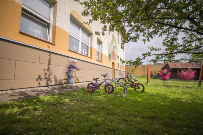 Odvětraný sokl na budově mateřské školy